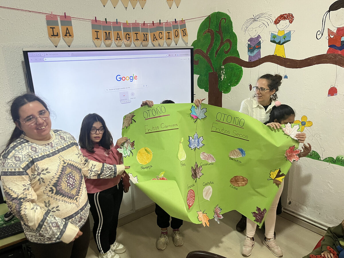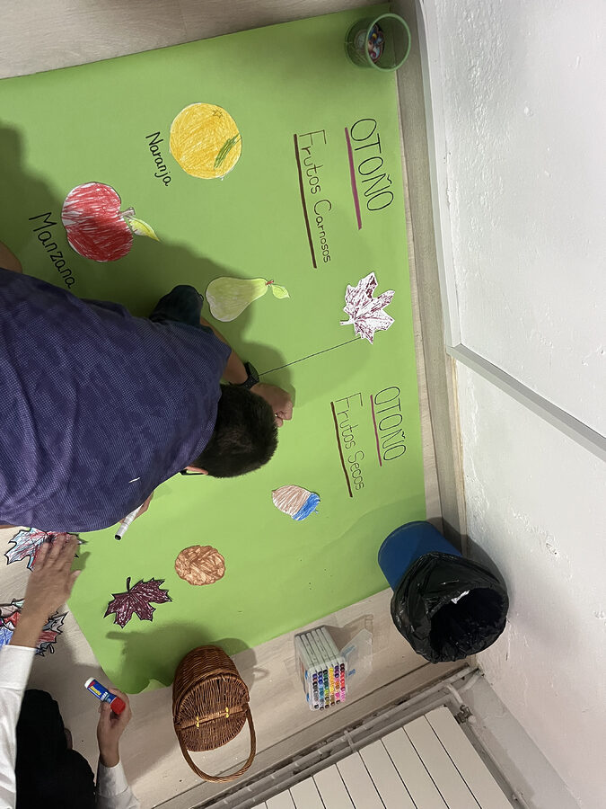 - Hemos hablado de los frutos del otoño y hemos hecho un mural.